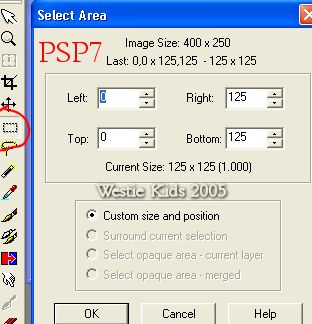 NOTE: PSP7 Users need to double click mouse on the Selection Tool to bring up the Select Area window (screenshot on right).