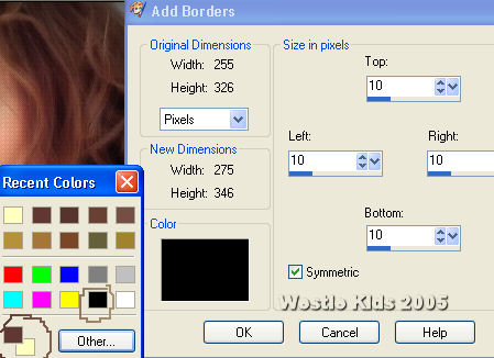 5) Image/Add Borders: 10px #FFFFC0 (right click on the black of the Add Borders window which pops up Recent Colors used window. At bottom left of that popup window are your current Foreground and Background solid colors and the black is there as well - so you can easily toggle back and forth with adding borders):