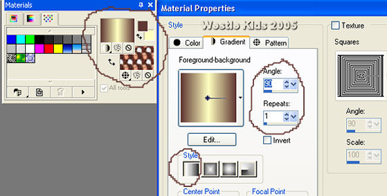 9) In the Materials Palette, change Background from Pattern to Gradient and find the Foreground/background gradient.