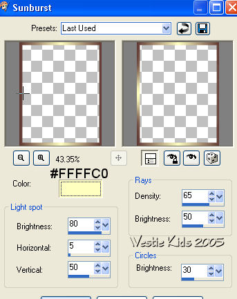 Repeat Sunburst effect, changing Horizontal to 95.