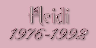![]() She was our first 'kid', a mixed terrier who captured our hearts forever. We'll see you again, precious Heidi, somewhere in time. You're back in God's Hands now. Love, Mommy and Daddy ![]() Just this side of heaven is a place called Rainbow Bridge. When an animal dies that has been especially close to someone here, the pet goes to Rainbow Bridge. There are meadows and hills for all our special friends so they can run and play together. There is plenty of food and water and sunshine and our friends are warm and comfortable. All the animals who have been ill and old are restored to health and vigor; those who were hurt or maimed are made whole and strong again, just as we remember them in our dreams of days and times gone by. The animals are happy and content, except for one small thing - they each miss someone very special to them, who had to be left behind. They all run and play together, but the day comes when one suddenly stops and looks into the distance. His bright eyes are intent, his eager body begins to quiver. Suddenly he begins to run from the group, flying over the green grass, his legs carrying him faster and faster. You have been spotted, and when you and your special friend meet, you cling together in joyous reunion, never to be parted again. The happy kisses rain upon your face, your hands again caress the beloved head, and you look once more into the trusting eyes of your pet, so long gone from your life, but never absent from your heart. Together you and your special pet cross the Rainbow Bridge........(c)1998 Steve and Diane Bodofsky. All Rights Reserved.
