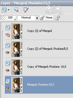 11) Back to PSP, hide the middle pixelated layer and UNhide the layer above it (the top pixelated layer).