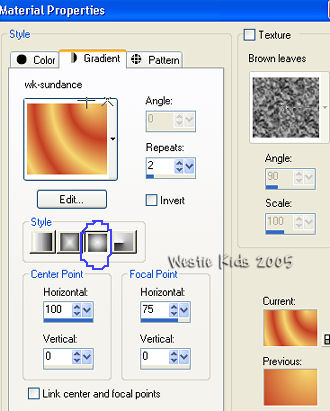 Below is another with changes to positions of Gradient's Center & Focal Points, slightly different framing, using stroke & fill for text; and using Steph's cowgirl tube and a different .jpg for the background (at 50% opacity).