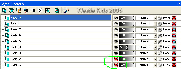 20) Go back into PSP. This time we will remove the red X from Raster 2 only, leaving red X on Raster 1.